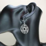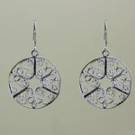 Pendientes disco de filigrana cierre hippy, terminación plata, diámetro 2,6 cm, largo total 4,1,  4,86 gramos (peso del par).
