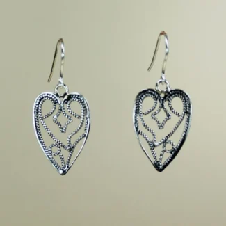 Pendientes flor, más bola de filigrana 10mm, más 1 cm de cadena, medidas parte baja 2,20×1 cm, largo total 3,5 cm, 5,40 gramos(peso del par).