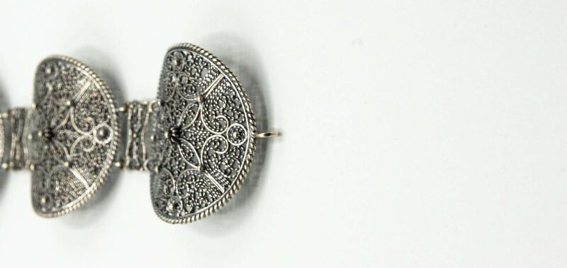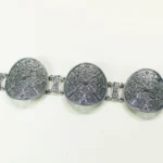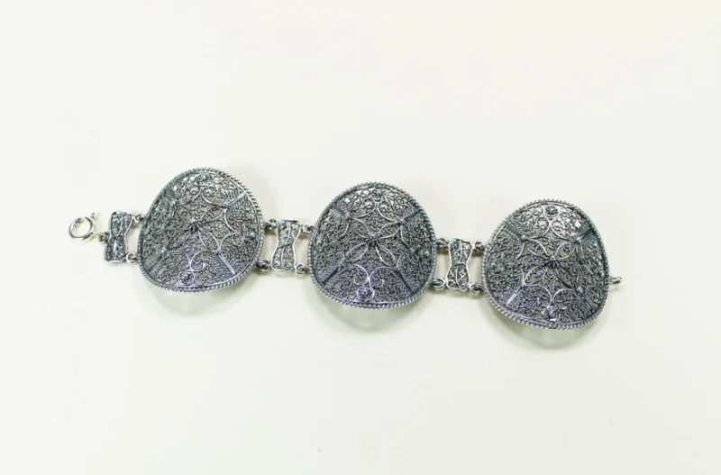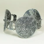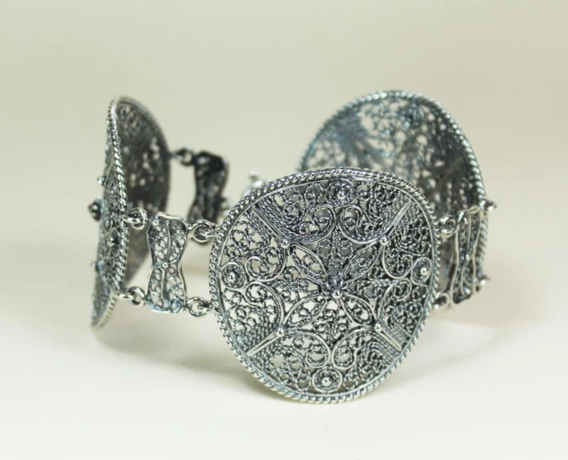 Pulsera de filigrana de discos, diámetro del disco 4,5 cm, largo total 18,5 cm, peso 39 gramos